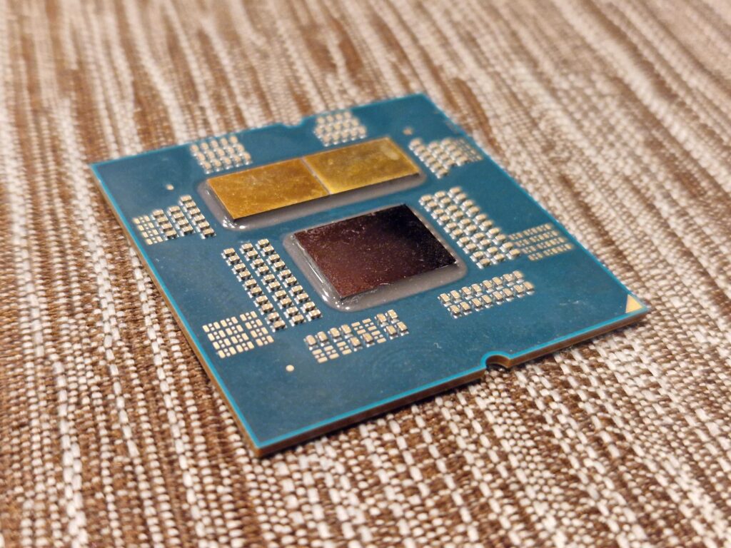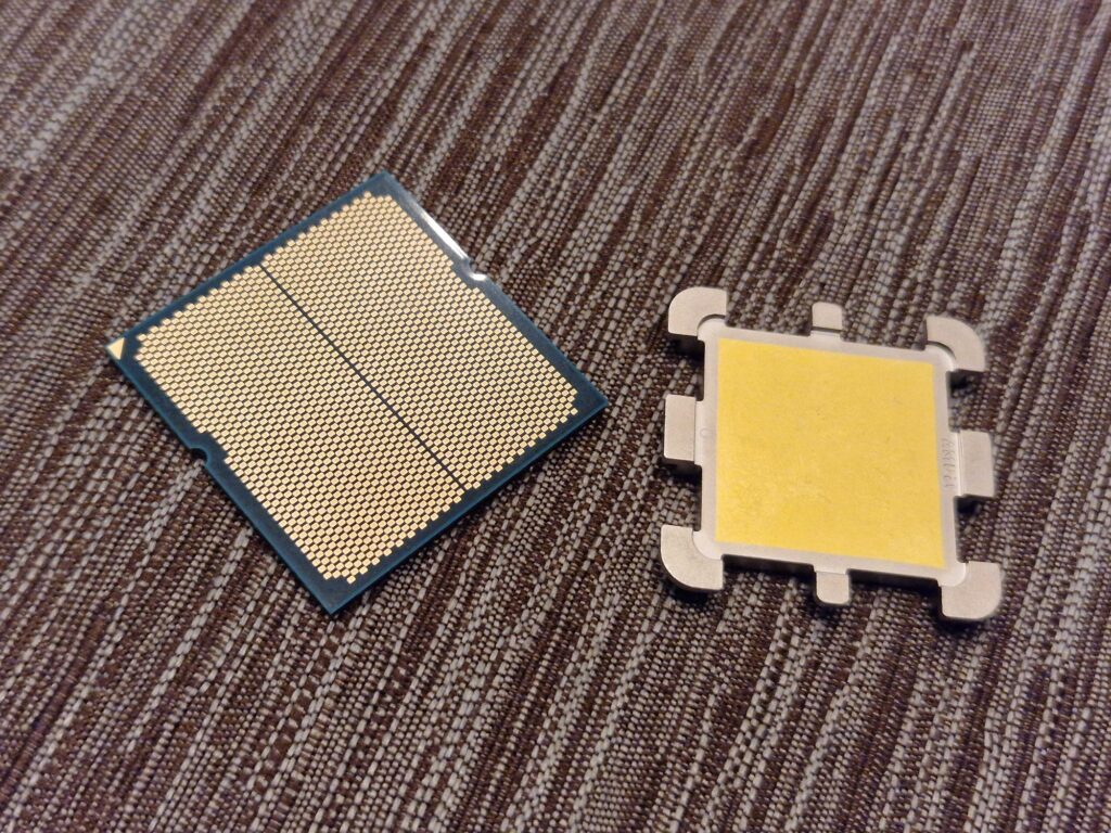 Under värmespridaren på AMD Ryzen 7000-serien med en I/O-del tillverkad på 6 nanometer och en CCD-krets tillverkad på 5 nanometer.