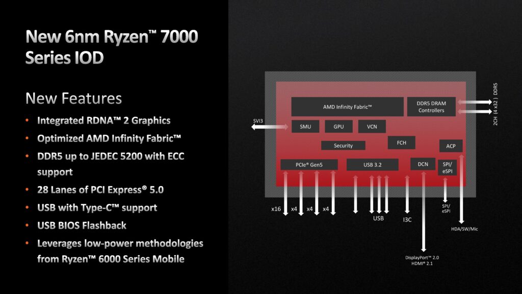 Den nya sockeln sällskapas av två nya styrkretsar (egentligen fyra, men mer om det nedan), som båda baseras på samma krets. Skillnaden är att instegsmodellen B650 använder en krets, medan X670 använder två av samma krets, vilka kopplas samman genom 4 kanaler PCI Express 4.0 x4 för att dubblera mängden möjliga I/O-anslutningar.