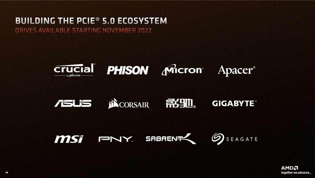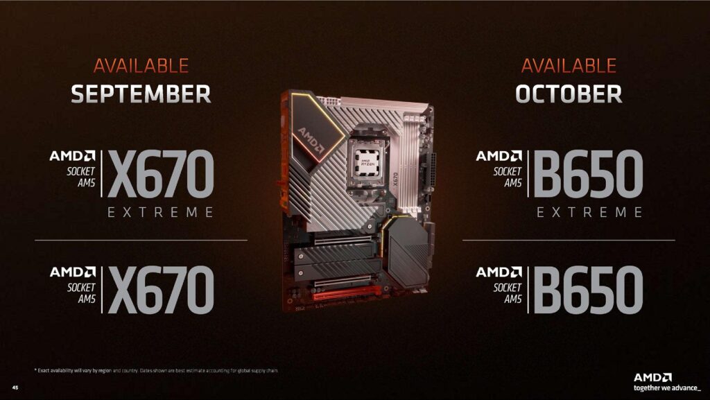 En processorlanseringen är ingenting utan tillhörande moderkort. Säljstarten av Ryzen 7000-serien den 27 september sällskapas av påkostade moderkort med styrkretsarna X670 Extreme (X670E) och X670, där moderkort med den första får stöd för PCI Express 5.0 till ett instickskort (grafikkort) medan den andra stannar kvar vid PCI Express 4.0 för ändamålet. I båda fall återfinns stöd för två SSD-enheter som ansluts över 4 kanaler PCI Express 5.0.