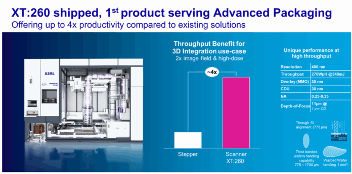 Vidare noteras ASML också ha breddat sitt sortiment från EUV-scanners till utrustning ämnad för avancerad paketering, i takt med att marknaden växer och inte ens TSMC kan möta efterfrågan. Under årets tredje kvartal har bolaget inlett leveranser av enheten XT:260, som enligt ASML själva levererar upp till fyra gånger högre throughput ställt mot existerande stepper-baserade lösningar. Detta tack vare att bolaget valt scanner-spåret som gjort dem marknadsledande inom litografiutrustning.
