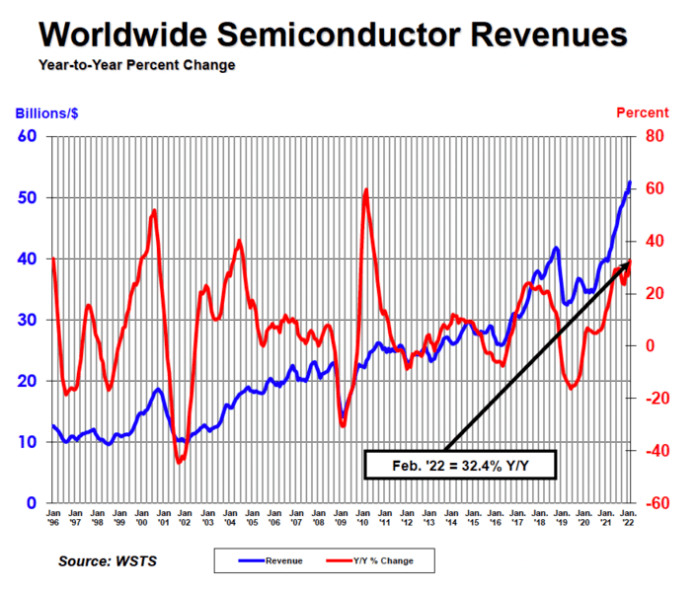Global semiconductor sales have increased by more than 20% on a year-to-year basis for 13 consecutive months, indicating consistently high and growing demand for semiconductors across a range of critical sectors