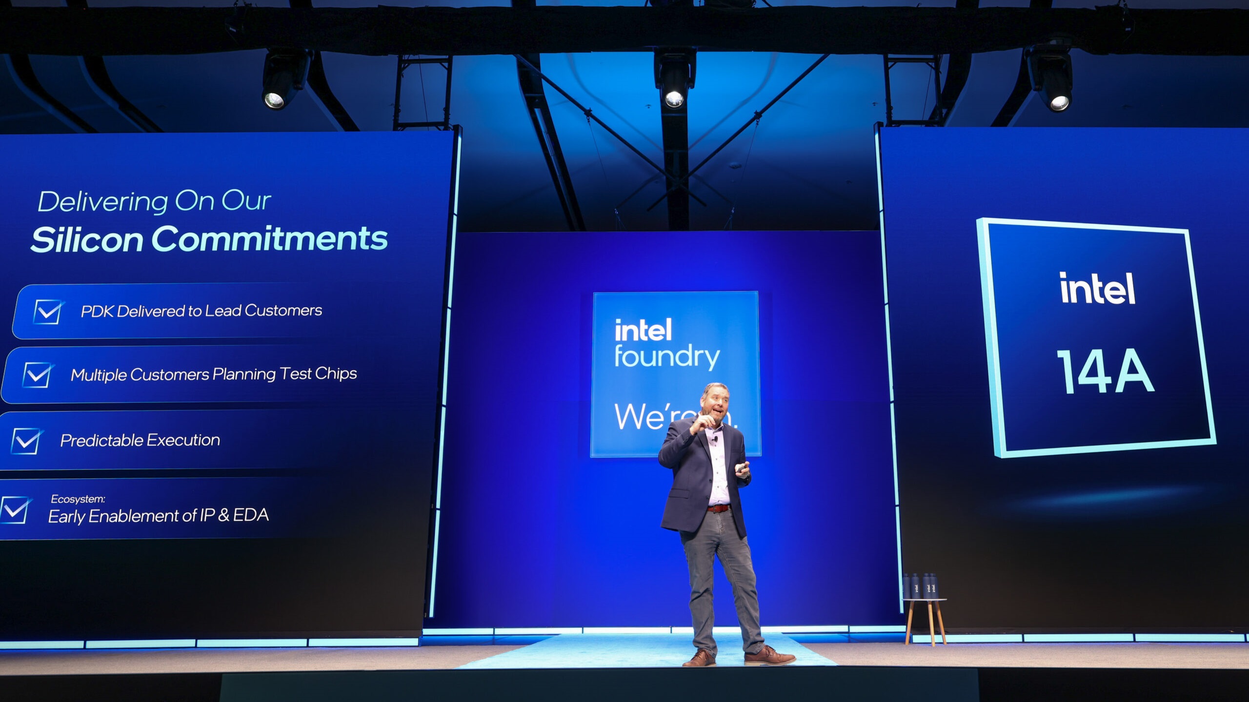 Huruvida Intel lyckas få betydande kunder på Intel 14A väntas avgöras under året. Intel har hittills släppt ett tidigt Process Design Kit (PDK) beskriven som version 0.5 av tekniken och väntas till hösten ge prospektiva kunder den färdiga 1.0-versionen. Vidare gick även entreprenören Elon Musk nyligen ut med att Intel anslutit sig till hans Terafab-projekt.
