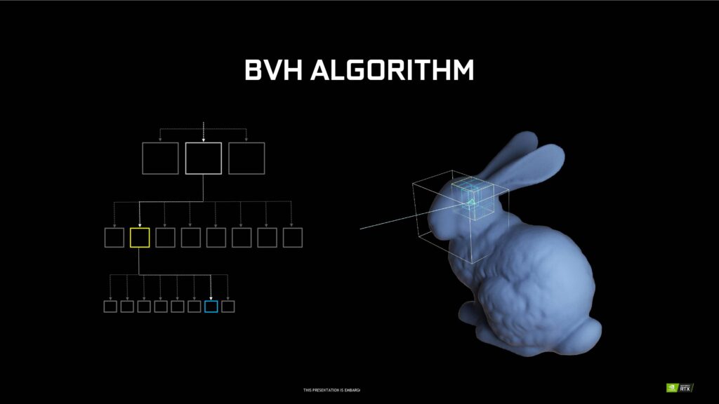 Enligt Nvidia medför detta enorma förbättringar vid ray tracing – upp till 10 gånger snabbare generering av BVH-strukturer med blott 5 procent minnesanvändning jämfört med Ampere. Värt att notera är att detta inte är någon gratis lunch som kommer fungera från dag ett, utan att möjliggöra detta kräver stöd i mjukvara och optimering från utvecklare.