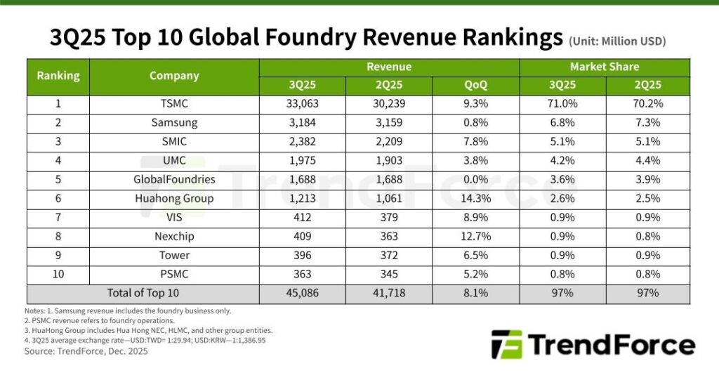 Mest troligt är att AMD väljer en dual-foundry-strategi med både Samsung och TSMC som leverantörer. Exakt produktmix mellan de två tillverkarna står givetvis skrivet i stjärnorna, men TSMC:s produktionskapacitet har redan slagit i taket till följd av att bolaget knipit hela 71 procent av marknaden för kontraktstillverkning. Samsung, med sitt mål om att knipa 20 procent, upptar i dagsläget blygsamma 6,8 procent som näst största aktör på marknaden.