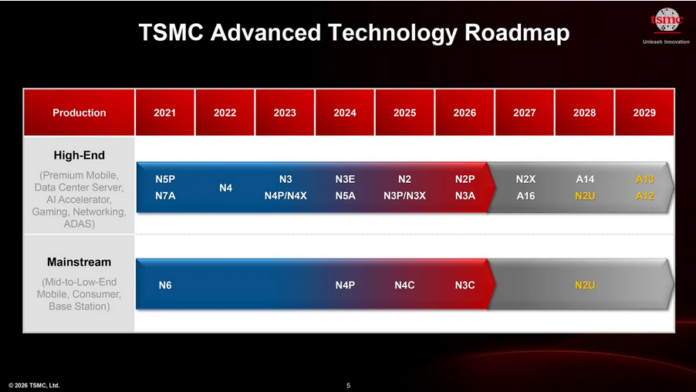 TSMC har stakat ut färdplanen mot 1,2 nanometer (produktnamn A12) år 2029 under sitt event 2026 North America Technology Symposium. Nämnvärt är att bolaget förväntar sig att producera de kommande kretsarna utan ASML:s absolut dyrbaraste litografiutrustning med EUV-strålning av High-NA-typ – för att istället fortsätta nyttja den något mindre dyrbara Low-NA-utrustningen bolaget redan fasat in.
