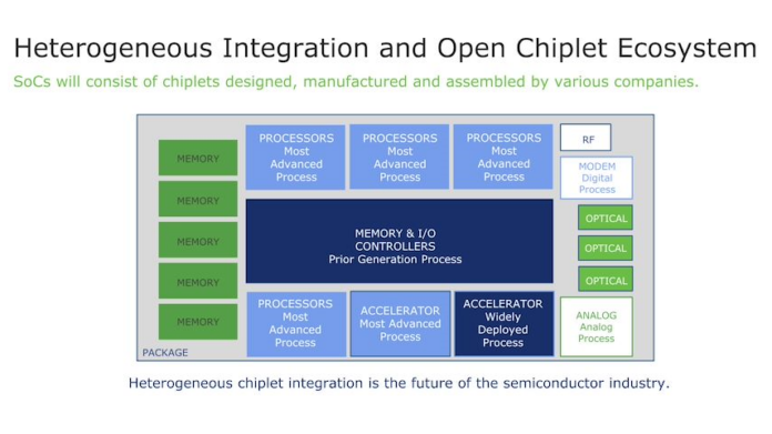 Hittills har alla aktörer som på något vis nyttjat tekniken gjort det med egna proprietära gränssnitt och kommunikationsbussar. Det här ska det bli ändring på med Universal Chiplet Interconnect Express (UCI Express). Det handlar kort och gott om en gemensam kommunikationsbuss som möjliggör för att kunna kombinera chiplets från olika aktörer. Bakom standarden står tunga namn som AMD, ARM, Google, Meta, Microsoft, Qualcomm, Samsung, TSMC och i sammanhanget framförallt Intel, som donerat specifikationen den nya standarden.